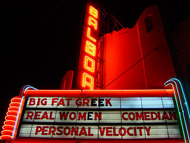 The Kitten explained, “it is playable BUT NOT singable for me unless I was a neutered Vienna Choir Boy! I can definitely play some of it cuz I think it is a cool musical artifact!” She bravely led a few audience members singing it. The unfamiliar song was a challenge for many but they did their best. A rousing reception greeted Ramsey as she led everyone singing “Happy Birthday Balboa.” I returned to the stage and someone yelled out, “Why did the Alexandria close?” I briefly discussed the problems of operating a neighborhood theater and the difficulty it presented for a large national chain unable to provide the loving care needed to give such a theater a chance. This provided a perfect segue to discuss the improvements and restoration ongoing at the Balboa.